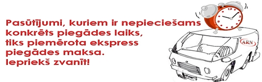 Все цены указаны с PVN. Оплату заказа можно выполнить с перечислением, или наличными . Заказы, сумма которого превышает 42.69 € / 30 Ls (с PVN) - доставка бесплатно, но за заказы, сумма которых не превышает 42.69 € / 30 Ls (с PVN), - плата за доставку - 5.69 € / 4.00 Ls (с PVN) это расходы связанные с поставкой по Риге и его территории. Для заказов вне Риги, звоните 22004708 или пишите на arn@arn.lv